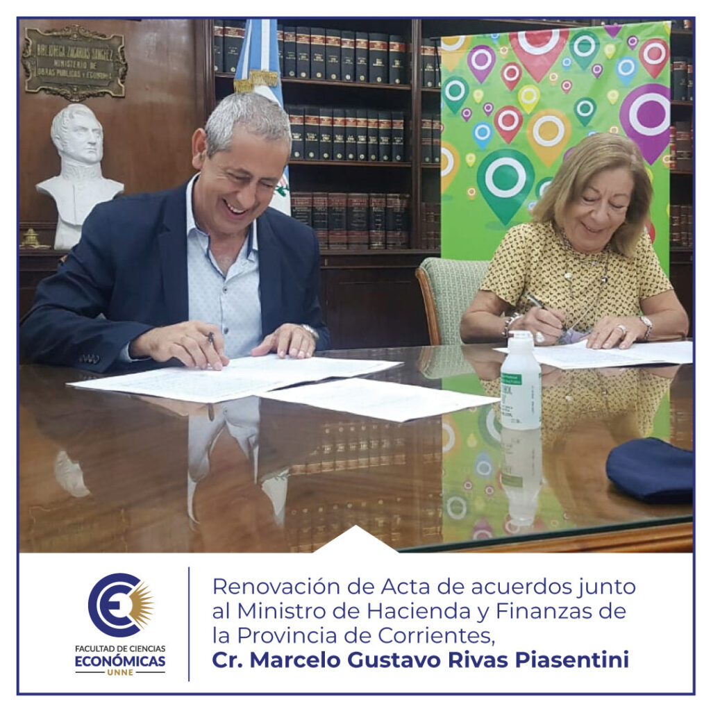 El pasado jueves 17 del corriente en el salón de acuerdos del Ministerio de Hacienda y Finanzas de la Provincia de Corrientes el Ministro anfitrión Cr. Marcelo Gustavo Rivas Piasentini y la Decana