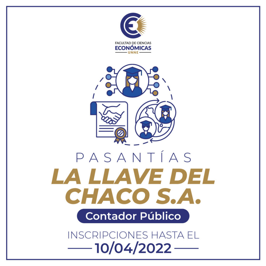 Se encuentra abierta la convocatoria para realizar pasantía en LA LLAVE DEL CHACO S.A. – FCE | UNNE -Eco – Chaco – Corrientes- Eco