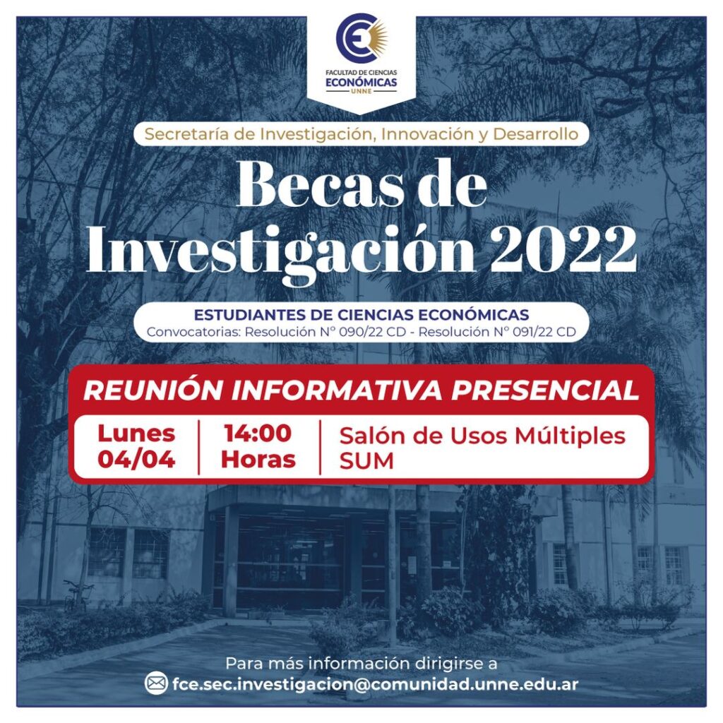 Invitamos a toda la comunidad a participar de la Reunión informativa sobre las becas de investigación, innovación y desarrollo 2022 – FCE UNNE