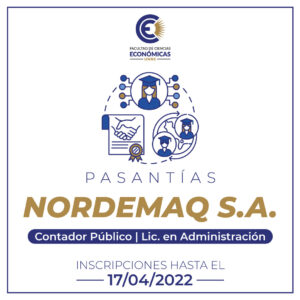 Se encuentra abierta la convocatoria para realizar pasantía en Nordemaq S.A. -FCE | UNNE | Chaco – Corrientes – Eco unne