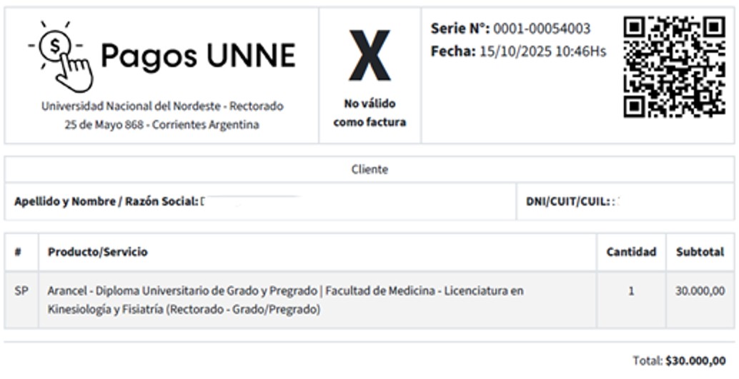 • Comprobante del pago de arancel a través del Sistema 🔗 Pagos UNNE